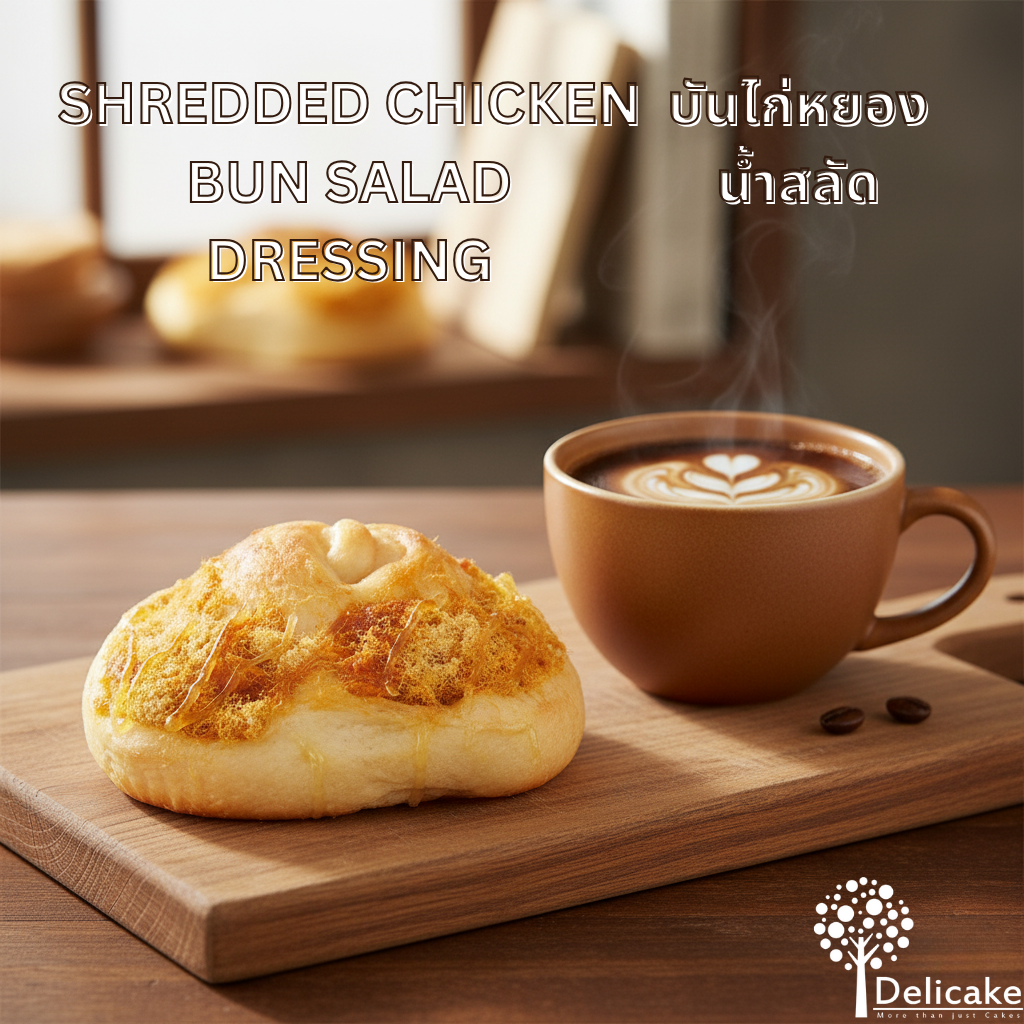 บันไก่หยองน้ำสลัด ขนมปังเนื้อนุ่มหอม สอดไส้ไก่หยองแน่นๆ คลุกเคล้ากับน้ำสลัดสูตรพิเศษ หอมมัน รสชาติกลมกล่อม อร่อยลงตัว เป็นเมนูที่หลายคนหลงรัก เหมาะสำหรับเป็นอาหารเช้า อาหารว่าง หรือของฝากที่อร่อยและกินง่าย