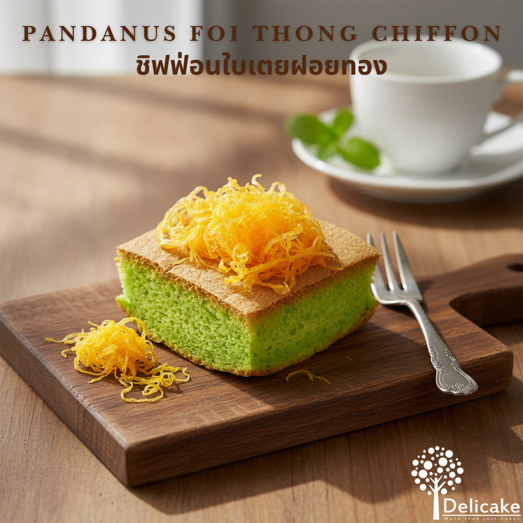 👑 และที่ขาดไม่ได้คือ ฝอยทอง เส้นไหมสีทองที่วางประดับอย่างสวยงาม มอบรสชาติหวานฉ่ำ ชุ่มลิ้น ที่ตัดกับความหอมของใบเตยได้อย่างลงตัวที่สุด! เมื่อคุณตักทานพร้อมกัน… ความหอมของใบเตยจะนำมาก่อน ตามด้วยความนุ่มของเค้ก และจบด้วยความหวานมันของฝอยทอง ที่ให้รสชาติแบบไทยแท้แต่มีความเบานุ่มแบบชิฟฟ่อน
