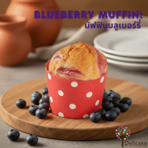 ✨ เนื้อสัมผัสของมัฟฟิน นั้นถูกอบจนได้ความนุ่มฟูและชุ่มฉ่ำกำลังดี มีกลิ่นหอมของเนยและวานิลลาอ่อน ๆ ที่เป็นเอกลักษณ์ 💖 แต่หัวใจหลักที่ทำให้มัฟฟินนี้พิเศษคือ บลูเบอร์รี่ ลูกกลม ๆ สีม่วงเข้ม ที่เราใส่ลงไปในเนื้อเค้กอย่างเต็มที่!