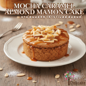 "ขอเชิญสัมผัสความหอมที่ลงตัวในทุกคำ! ✨ นี่คือ 'มาม่อนมอคค่าคาราเมลอัลมอนด์' เค้กที่ถูกออกแบบมาเพื่อคอกาแฟและคนรักความละมุนโดยเฉพาะ ☕