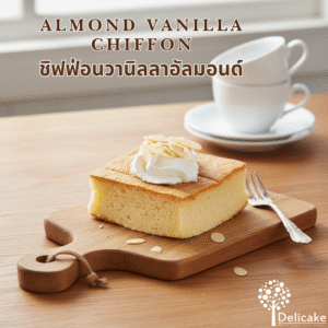 "เมื่อพูดถึงเค้กที่เบาที่สุดในโลก... ต้องยกให้ 'ชิฟฟ่อนวานิลลาอัลมอนด์' ชิ้นนี้เลยค่ะ! ☁️ ด้วยเนื้อเค้กที่ฟู นุ่ม และเบาจนแทบละลายในปาก ราวกับกำลังทานก้อนเมฆที่อบอวลไปด้วยกลิ่น วานิลลา หอมละมุน 💖