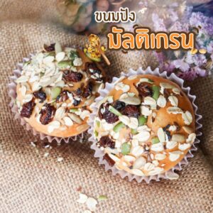บันมัลติเกรน (Multigrain Bun) ขนมปังเพื่อสุขภาพที่อุดมไปด้วย ธัญพืชหลากชนิด ไม่ว่าจะเป็น ข้าวโอ๊ต, เมล็ดแฟลกซ์, เมล็ดทานตะวัน, งาดำ, งาขาว และเมล็ดฟักทอง ให้เนื้อสัมผัสนุ่มแน่น หอมธัญพืชธรรมชาติ เต็มไปด้วยไฟเบอร์และสารอาหารที่ดีต่อร่างกาย