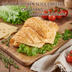 "สัมผัสความฟินที่ลงตัวใน 'ครัวซองต์ดับเบิ้ลไก่สไลด์ชีส' 🥐🧀✨ ครัวซองต์อบใหม่ๆ หอมเนย กรอบนอกนุ่มใน สอดไส้ไก่สไลด์ปรุงรสฉ่ำๆ พร้อมชีสเยิ้มๆ แบบดับเบิ้ล! ทุกคำคือความอร่อยที่เข้มข้น หอม มัน ได้รสชาติเต็มๆ เหมาะสำหรับมื้อที่ต้องการความอร่อยแบบจัดเต็ม ใครสายชีสกับครัวซองต์ต้องไม่พลาดชิ้นนี้เลย!"