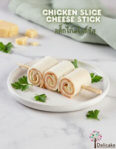 "ยกระดับการกิน 'สติ๊ก' ให้พรีเมียมกว่าที่เคย! ขอแนะนำ สติ๊กไก่สไลด์ชีส (Baked Chicken Slices with Cheese) สูตร No-Fried! เราเลือกใช้ เนื้อไก่สไลด์บางเฉียบ ทำให้ได้สัมผัสที่นุ่มละมุน ไม่แข็งกระด้าง ห่อหุ้ม มอสซาเรลล่าชีสเยิ้ม ๆ ไว้ตรงกลางอย่างพิถีพิถัน