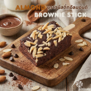 "สัมผัสความสุขระดับพรีเมียมในทุกคำ! ✨ ขอแนะนำ บราวนี่สติ๊กอัลมอนด์ 🍫 ที่ผสานความเข้มข้นของดาร์กช็อกโกแลตเข้ากับความหอมมันของถั่วได้อย่างลงตัว 🥜