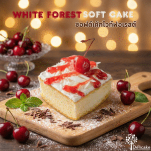 ไวท์ฟอเรสต์ซอฟต์เค้ก (White Forest Soft Cake) เป็นเค้กที่ได้รับแรงบันดาลใจมาจากแบล็คฟอเรสต์เค้ก แต่เปลี่ยนจากเค้กช็อกโกแลตเข้มข้นมาเป็นเค้กวานิลลาหรือเค้กสีขาวเนื้อนุ่มแทน และใช้ไวท์ช็อกโกแลตแทนดาร์กช็อกโกแลตค่ะ ส่วนประกอบหลักๆ ก็ยังคงมีเชอร์รี่และวิปปิ้งครีมเหมือนเดิม