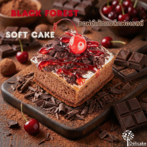 "เมื่อความคลาสสิกของ 'แบล็คฟอเรสต์' 🖤 ถูกนำมาตีความใหม่ในรูปแบบ 'ซอฟต์เค้ก' 🍰 ผลลัพธ์ที่ได้คือความนุ่มละมุนที่ยากจะลืมเลือน! เนื้อเค้กช็อกโกแลต 🍫 ที่นุ่มชุ่มฉ่ำและมีกลิ่นหอมเข้มข้น ถูกสลับชั้นด้วยวิปครีมสดแท้ 🍦 ที่เบาและไม่หวานจัด และเติมเต็มด้วยเชอร์รี่สีแดงสด 🍒 ที่ให้รสชาติเปรี้ยวอมหวานมาตัดความเข้มข้นได้อย่างลงตัว 💯 นี่คือเค้กที่รวมเอาความอร่อยของช็อกโกแลต ความสดชื่นของผลไม้ และความละมุนของครีมไว้ในคำเดียว! เป็นการยกระดับของหวานให้เป็นประสบการณ์ที่สมบูรณ์แบบที่สุด! 🎉"